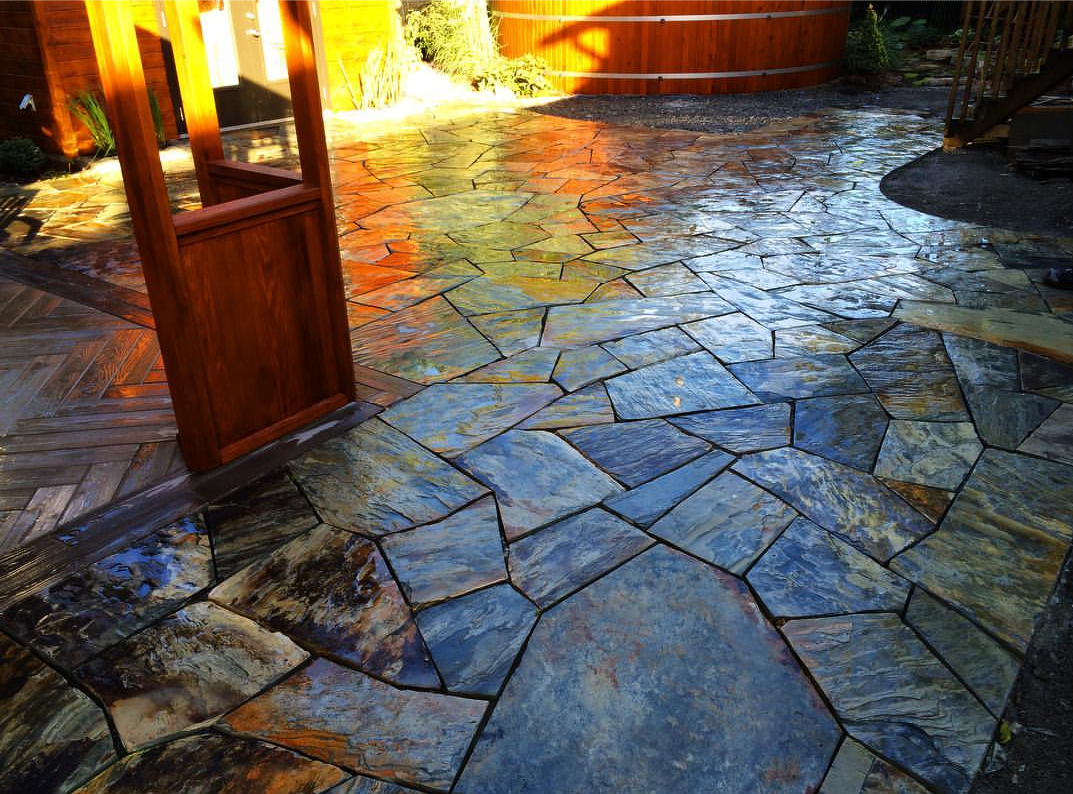 Grande terrasse et sentiers d’ardoise réalisé en 2016.