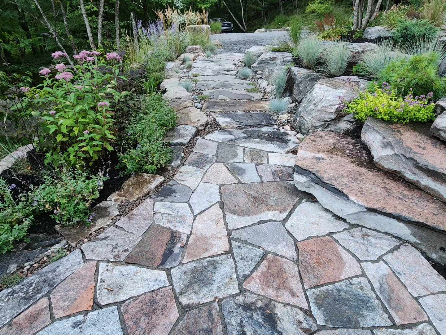 Jardin champêtre réalisé au cours de l’été 2022 à Mont-Tremblant.